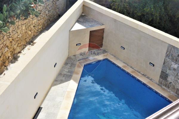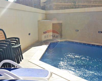 This comfortable newly converted House of Character in Xewkija is located in a quaint area of the village. The property comprises of the outdoor entrance leading to a kitchen, dining and living area together with an outside pool and deck area. The ground floor also includes a double bedroom with en-suite and a guest bathroom. A staircase leads to the first floor which consists of three double bedrooms, all of which are en-suite. One of the bedrooms is complemented by a spacious terrace overlooking the pool area with distant views. The other two bedrooms both include a normal sized balcony. The second floor comes with a roof terrace and another room which can be used as the fifth bedroom with en-suite, as an office, or as a storage room. The property is located very close to most amenities including bus stop, grocery stores and also a traditional bakery. Comes fully furnished and ready to move into! Also ideal for those who wish to utilize the property as a B&B business.