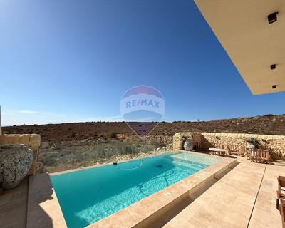 MANIKATA – Three-bedroom detached VILLA located in a peaceful area of Malta, surrounded by breathtaking country and sea views. This property features a spacious open-plan split-level living, dining, and kitchen area with floor-to-ceiling windows, flooding the space with natural light and leading out to a stunning infinity pool with panoramic views. The villa offers three double bedrooms and three modern bathrooms. The pool area includes a generous outdoor space, perfect for entertaining and al fresco dining. Brand new build in a stylish, modern Mediterranean design with underfloor heating and air conditioning throughout. Includes a garage and elevator for added convenience.