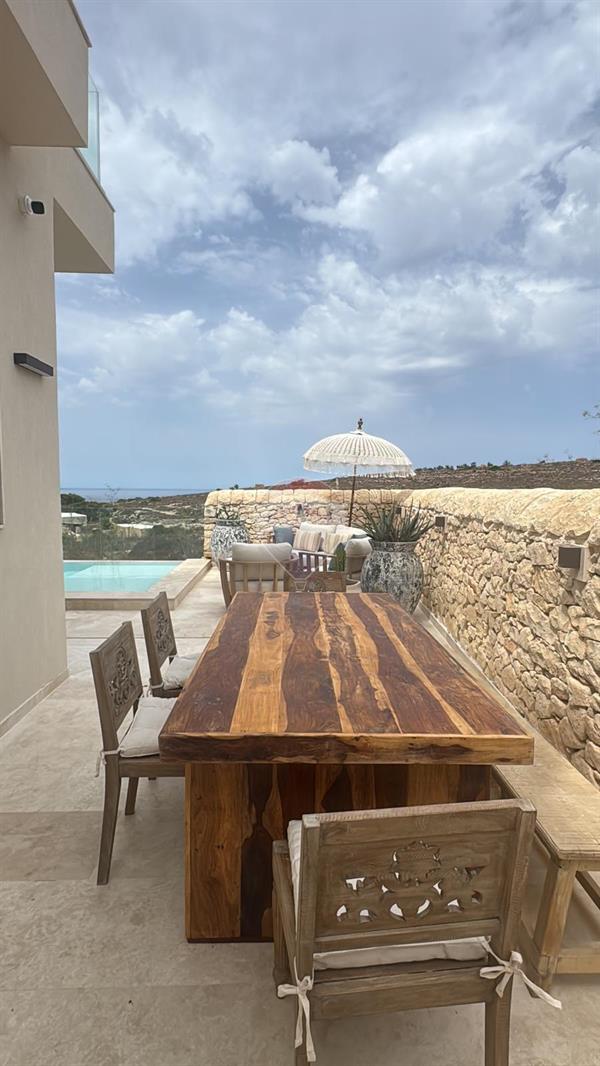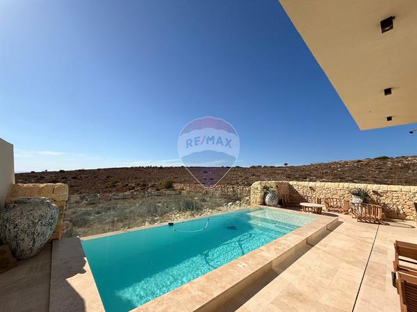 MANIKATA – Three-bedroom detached VILLA located in a peaceful area of Malta, surrounded by breathtaking country and sea views. This property features a spacious open-plan split-level living, dining, and kitchen area with floor-to-ceiling windows, flooding the space with natural light and leading out to a stunning infinity pool with panoramic views. The villa offers three double bedrooms and three modern bathrooms. The pool area includes a generous outdoor space, perfect for entertaining and al fresco dining. Brand new build in a stylish, modern Mediterranean design with underfloor heating and air conditioning throughout. Includes a garage and elevator for added convenience.