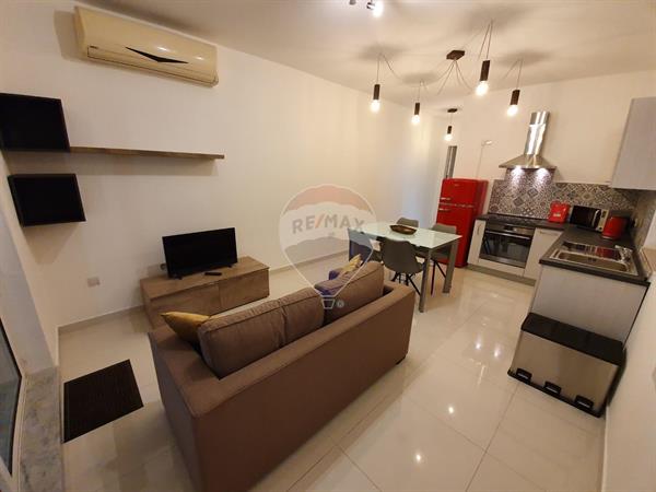 Mellieha Penthouse with 1 double bedroom. The property is located in a quiet area close to all services and just a few minutes from the beach. The accommodation consists of an open plan kitchen, a living/dining room opening onto a large front terrace with outdoor furniture and a beautiful sea view, a double bedroom and a fully fitted bathroom. No Pets.