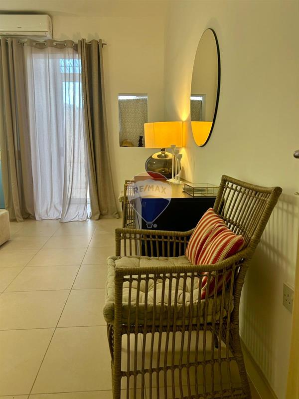 Mellieħa Bay: Bright apartment, stone throw away from Malta’s largest beach with sea views. Property comprises of living and dining area leading on to a front terrace with room for entertaining, separate kitchen, main bathroom, 2 double bedrooms with main having an en-suite, a washroom and a back yard. Not to be missed!