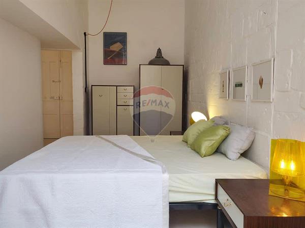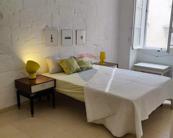 Located in Valletta’s historic Jewish quarter, the property is on a pedestrian stepped street round the corner from the design hub and the school of art and a stone throw away from the beach. Close to all basic amenities and just a few minutes’ walk away from the hustle and bustle of the city’s shops, bars and restaurants. This larger than usual Valletta apartment has just been refurbished and is furnished with a mixture of vintage and contemporary pieces. It comprises of a spacious living-dining room, a fully equipped kitchen, two bedrooms, and new bathroom. This space is very well lit with large apertures and a traditional Maltese gallery balcony overlooking a quiet pedestrian street and several other apertures and a small open terrace overlooking a large central courtyard. The traditional stone build and high ceilings of the apartment keeps things naturally insulated and the apartment is cool during the summer months and there are large ceiling fans in nearly every room. The apartment is located on the second floor with no lift and forms part of a well-kept block of eight other apartments. The block also has a shared rooftop on the 4th floor enjoying sea views and furnished with garden furniture.
