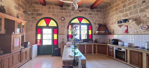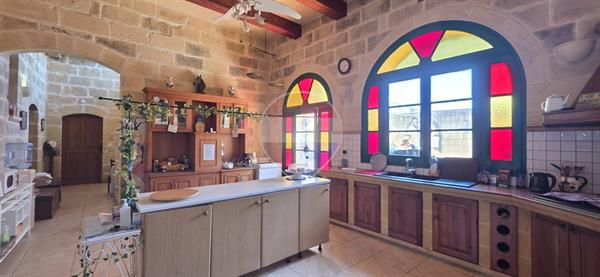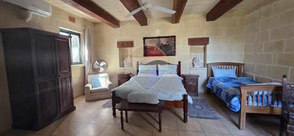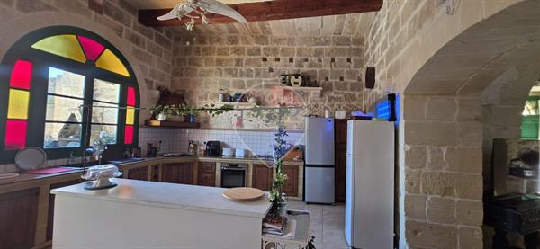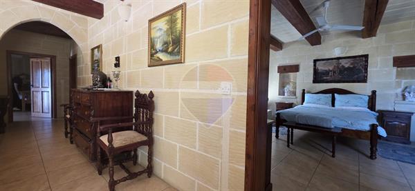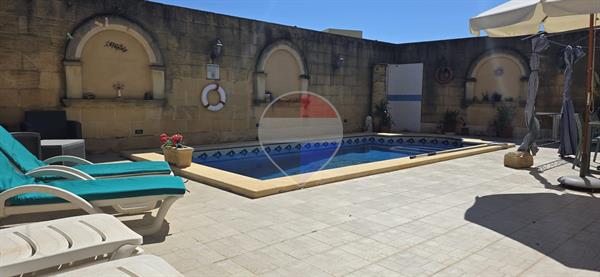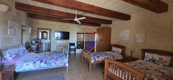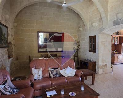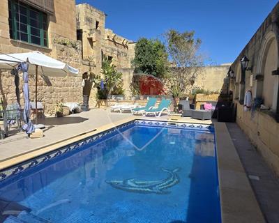 Xewkija - A beautifully converted 4-bedroom, 4-bathroom farmhouse full of traditional charm and character, located in a quiet and quaint area, away from traffic yet close to all amenities. Upon entering, you are welcomed by a spacious open-plan kitchen and dining area, seamlessly connected to a large living room featuring high ceilings, traditional arches, and authentic Gozitan features. The space flows effortlessly onto a generous outdoor area, complete with a large swimming pool and ample deck space, perfect for entertaining. The ground floor also includes a very large double bedroom, main bathroom, and a separate laundry room. An original stone staircase leads to the first floor, where one finds three exceptionally large bedrooms, all enjoying en-suite facilities and abundant natural light. This corner property benefits from excellent natural light throughout and offers a peaceful living environment. It is structurally sound, sold mostly furnished, and includes solar water heating. An ideal family home, holiday retreat, or rental investment. A truly must-see property.