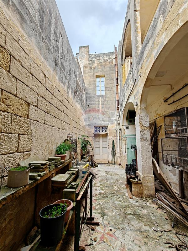 Mosta - A rare opportunity to acquire a charming townhouse built approximately 130 years ago, situated within an Urban Conservation Area in one of Mosta’s most sought-after locations, just a short walk from Mosta Church and close to all daily amenities. This unconverted yet structurally sound property offers exceptional potential to be transformed into a prestigious residence while retaining its original character and architectural charm. The property is built on a generous plot measuring approximately 8.1 metres by 63.21 metres and enjoys a traditional layout with high ceilings and well-proportioned rooms. Upon entering, one is welcomed by a spacious entrance hall leading to a separate kitchen and dining area, a main bathroom, and an additional spare toilet. At the heart of the ground floor lies an internal yard featuring a beautiful arched lodge, creating a tranquil space that enhances natural light and ventilation throughout the home. One of the standout features of this townhouse is its exceptionally large garden, measuring approximately 8 meters by 50 meters, with a total area of circa 400 square meters. The garden is adorned with mature citrus trees and offers ample space for outdoor entertaining, landscaping, or the possibility of a swimming pool, subject to the necessary permits. The first floor comprises a landing area leading to three bedrooms, including two double bedrooms and one single bedroom, all enjoying good natural light. The second floor leads to a washroom and a spacious roof terrace measuring approximately 75 sqm, offering open views and further potential for outdoor enjoyment or additional development, subject to permits. An optional street-level three-car garage is also available at an additional cost of €266,000, a rare and highly valuable asset in this central location. This property represents a unique opportunity for those seeking a character home with generous outdoor space in a prime UCA location, ideal as a family residence or a long-term investment in one of Mosta’s most desirable areas.