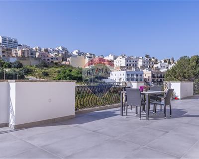A Semi-Detached Ground floor maisonette, situated in an excellent residential area, very close to Spinola Bay. Accommodation comprises of a well-sized open plan fitted kitchen/dining/living leading to a good-sized terrace, ideal for entertaining while enjoying beautiful Valley views. This attractive home further comprises a bathroom, 3 bedrooms, shower en-suite and a street level interconnecting one car garage. Highly recommended!